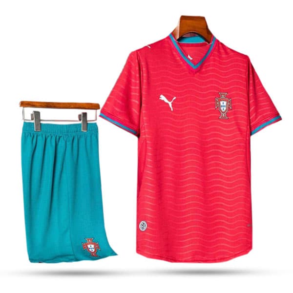 تیم ملی پرتغال با تاریخچهای درخشان و نسلی از ستارههای جهانی، همیشه نماد فوتبالی زیبا، پرتکنیک و احساسی بوده است. پیراهن و شورت اول پرتغال، با آن رنگ سرخ پرحرارت و نمادینش، تنها یک لباس ورزشی نیست؛ بلکه پرچم غرور ملتی است که فوتبال در رگهایش جریان دارد. این ست، هواداران را به عضوی از خانوادهای تبدیل میکند که نامش با افسانههایی مانند کریستیانو رونالدو، اوزهبیو و لوئیس فیگو گره خورده است.
