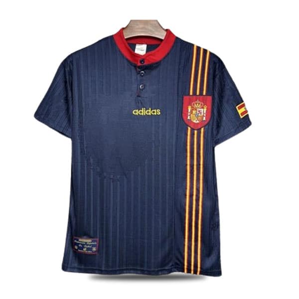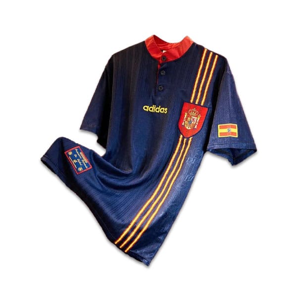 این پیراهن یادآور مسابقات یورو ۱۹۹۶ در انگلستان است که اسپانیا با دروازهبانی درخشان آندونی زوبیزارتا و رهبری فرناندو هیرو در آن به میدان رفت. طراحی جسورانه و متفاوت این پیراهن، آن را به یکی از مشهورترین لباسهای دوم در تاریخ فوتبال جهان تبدیل کرده است.