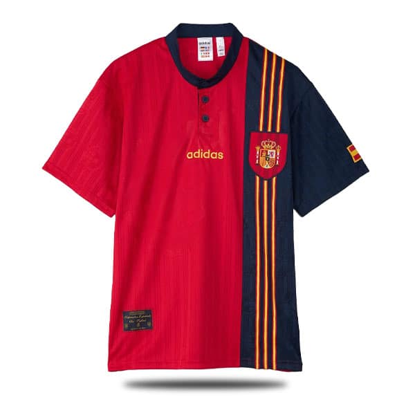 این پیراهن یادآور مسابقات یورو ۱۹۹۶ در انگلستان است که اسپانیا با دروازهبانی درخشان آندونی زوبیزارتا و رهبری فرناندو هیرو در آن به میدان رفت. طراحی جسورانه و متفاوت این پیراهن، آن را به یکی از مشهورترین لباسهای دوم در تاریخ فوتبال جهان تبدیل کرده است.